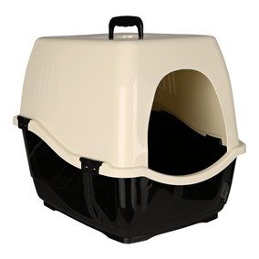Bac à litière Bill 1 S avec capot, 40 × 42 × 50 cm, noir/crème - ouverture rapide et fermeture sécurisée