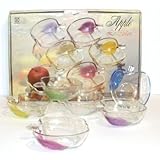 B.E.C. - Coupelle POMMES 11 cm en verre :la boite de 6 P *Boite carton décorée contenant 6 Coupelles en verre en forme de pomme de 11 cm avec décor feuille de 6 couleurs différentes Coupelles emboitables pour tenir peu de place Pour desserts ou fromages blancs Un joli petit cadeau Made in INDONESIA.