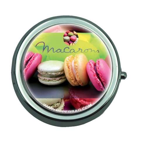 Boite a pilules macarons moelleux Boite à pilules : 3 compartiments Diamètre: 50mm