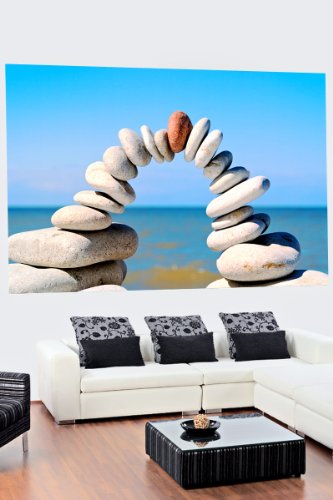 Grande image murale à tapisser - pose facile - 194 x 134 cm - nature paysage galets