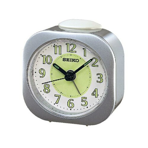 Seiko Bedside Alarm Clock Plastic Case LumiBrite Metallic silver plastic case Measures 7.3cm x 7.2cm x 3.8cm