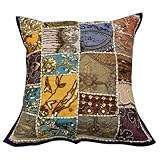 1 home déco pièce grande tapisserie multicolore housse de coussin fait main perles taie d'oreiller jeter inde 24 "pouces