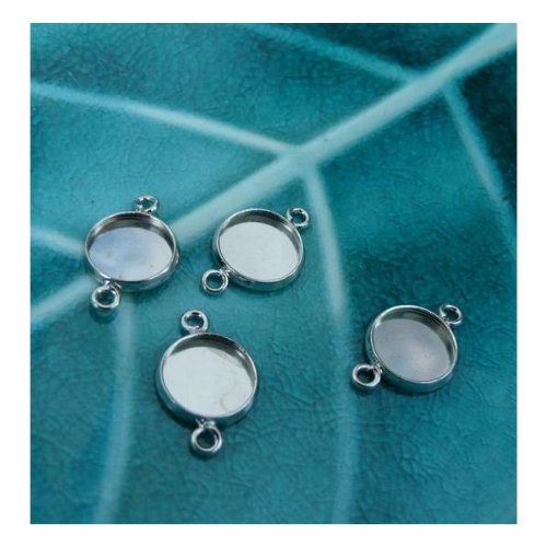 10 Supports dbl de pendentif 14mm camé cabochon argent